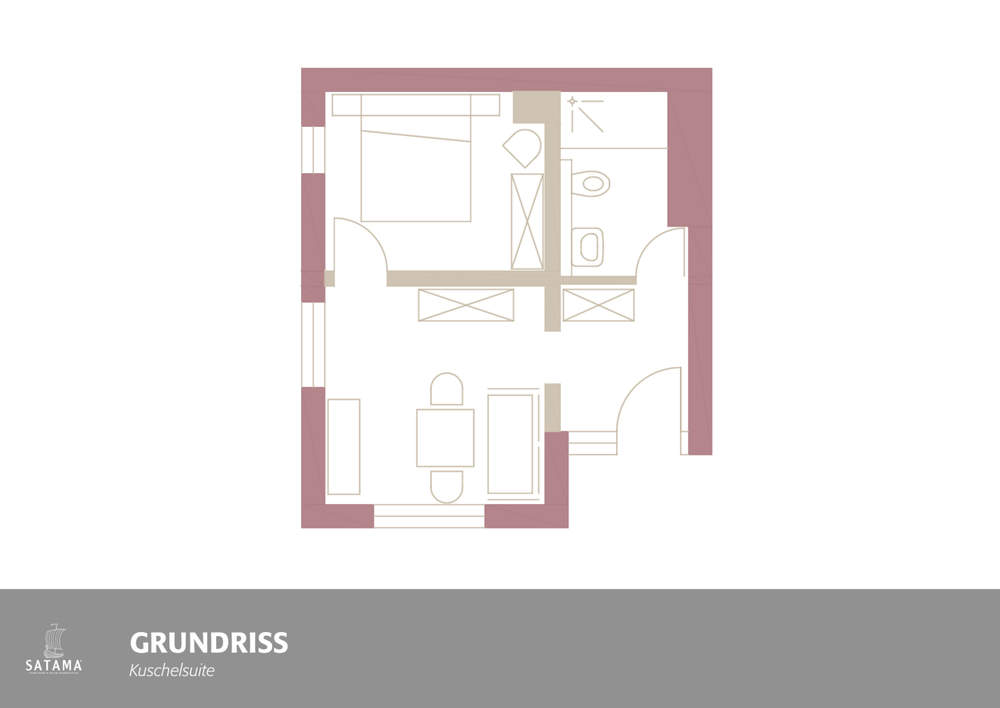 Exclusive apartment with separate living room & bedroom, bathroom and sitting area on the meadow behind the apartment house (furniture only available in the summer months), for 2 people. Some with an open bathroom to the bedroom. No sleeping possibility in the living room. The size of the apartments is approx. 30 m². In almost all cozy suites of the SATAMA holiday apartments you sleep in heavenly box spring beds.