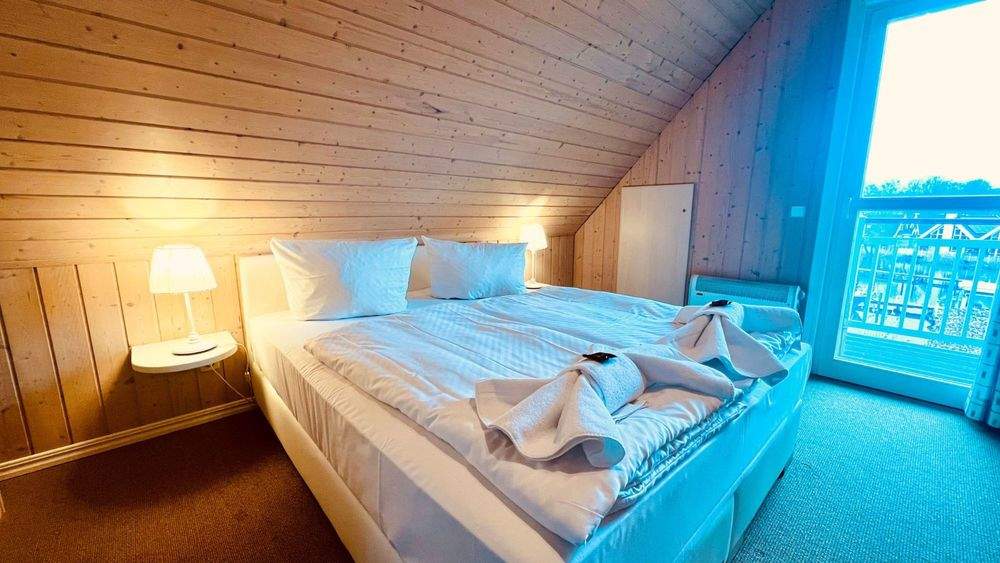 You can reach the "Kapitän" unit via a charming maisonette-entrance, which offers a rare panoramic view of the holiday park with its harbor and the lake Scharmützelsee. In just 5 minutes you can reach - if you like, already dressed in a bathrobe - Berlin-Brandenburg's most beautiful saunapark - the SATAMA.